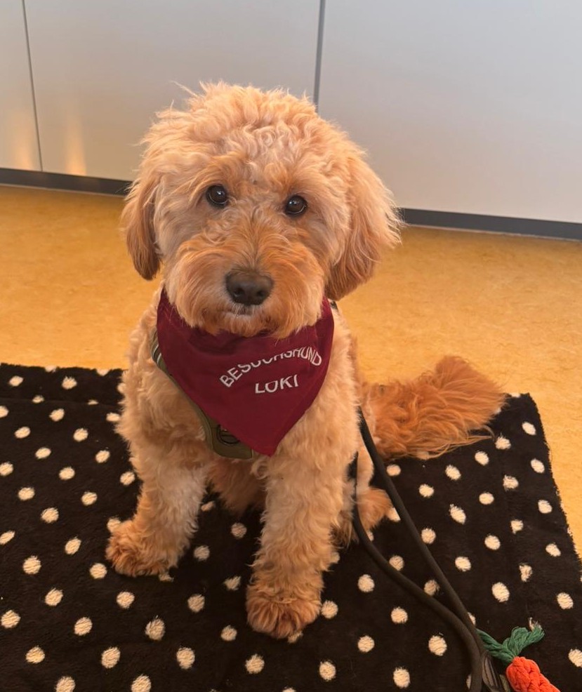 „Loki hat sich von Anfang an so verhalten, als wäre er schon immer Teil der Schule“, erzählt seine Besitzerin und Lehrerin Nicole Kamrowski, die ihren Vierbeiner von klein auf an das Leben als Begleithund herangeführt hat. Der Berliner Export durfte schon als Welpe an Vorlesungen teilnehmen und sehr früh erste Begleithund-Erfahrungen im Pflegeheim sammeln – ein echter Allrounder für alle F(e)lle also.