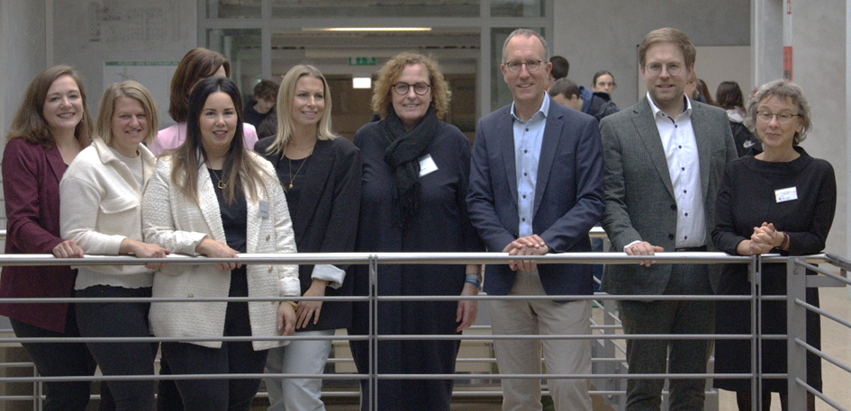 Neben dem Orga-Team (von links) Frau Adamec, Frau Funk, Frau Weiß, Frau Balukcic, Frau Kögler, waren auch die Schulleiterin Birgits Bürk, Herr Markus Beier von der IHK, sowie die Zentrumsschulleiter und Herr Ilg (GSWN) und Frau Klumpp (MMS) von der Veranstaltung begeistert.