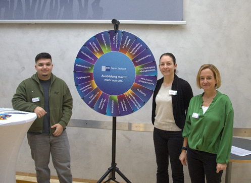 Das Team der IHK Rems-Murr präsentiert sich mit ihrem Ausbildungsglücksrad